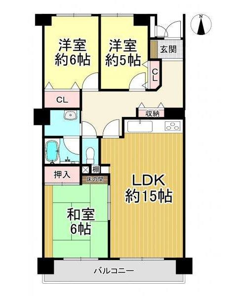 【居間・リビング】LDK15帖☆ 南向きで日当たり良好♪